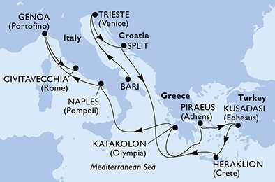 | Den 8 | Katakolon (Olympie), Řecko, (připlutí: 10:00 | odplutí: 17:00) |
