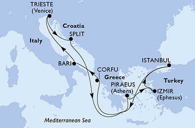 | Den 6 | Izmir (Efez), Turecko, (připlutí: 08:00 | odplutí: 17:00) |