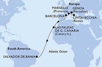 | Den 14 | Salvador, Brazílie, (připlutí: 13:00 | odplutí: --:--) |