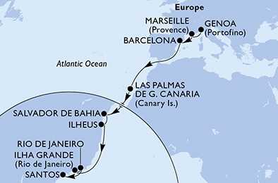 | Den 18 | Santos, Brazílie, (připlutí: 06:00 | odplutí: --:--) |