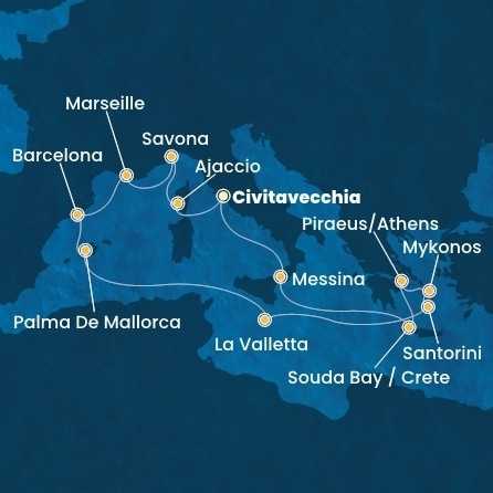 Itálie, Francie, Španělsko, Malta, Řecko z Civitavecchia na lodi Costa Fascinosa