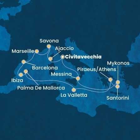 Itálie, Francie, Španělsko, Malta, Řecko z Civitavecchia na lodi Costa Serena