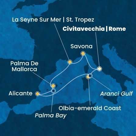 Španělsko, Itálie, Francie z Palma de Mallorca na lodi Costa Pacifica