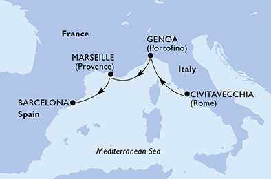 Itálie, Francie, Španělsko z Civitavecchia na lodi MSC Poesia