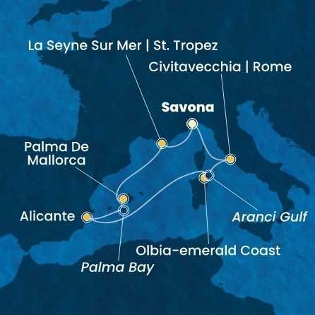 Itálie, Francie, Španělsko ze Savony na lodi Costa Pacifica