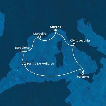 Itálie, Francie, Španělsko ze Savony na lodi Costa Toscana