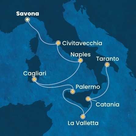 Costa Serena byla postavena v roce 2007 a je kombinací elegance a sofistikovanosti. Její prostorné interiéry a výzdoba odkazují na řeckou mytologii a antický Řím.