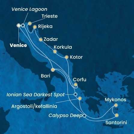 Itálie, Řecko, Chorvatsko, Černá Hora z Marghery na lodi Costa Deliziosa