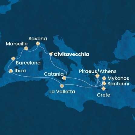 Itálie, Řecko, Malta, Španělsko, Francie z Civitavecchia na lodi Costa Fascinosa