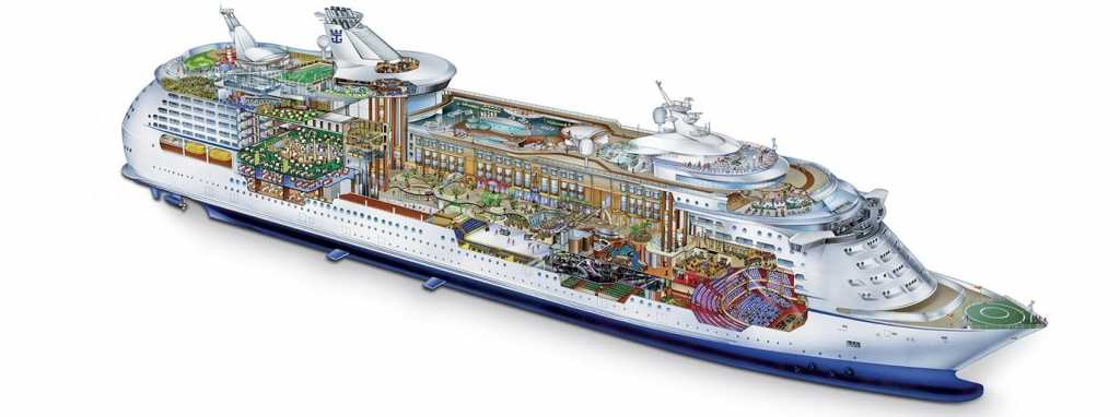 Restaurace:Hlavní restaurace zahrnující snídaně, obědy i večeře Mnoho restaurací včetně Sushi baru Jade a asijské restaurace, Windjammer Café a lehkého občerstvení Café Promenade Příležitostné občerstvení nabízí třeba Johnny Rockets nebo Ben & Jerry's Ice Cream Asijská restaurace Izumi s japonskými specialitami a sushi Italská restaurace Giovanni's TableZábava:Divadlo v broadwayském stylu Show na ledě ve Studiu B Casino Royale® ve stylu Las Vegas 3D kino Ústřední Royal Promenade s duty-free zónou a butiky 15 barů včetně R Baru evokujícího atmosféru 60. let nebo Crown & Kettle Pubu Na palubě je možné navštěvovat jazykové kurzy, taneční hodiny, kurzy výroby šperků apod.Sport a adrenalin:Lezecká stěna, minigolf, hřiště na míčové sporty Surfařský simulátor FlowRider Kluziště Fitness centrum, kurzy fitness s trenérem (jóga, tai chi) Dráha na joggingRelaxace:3 bazény a 6 vířivek Solárium Wellness areál Vitality Spa s relaxačními a kosmetickými procedurami, masážemi, akupunkturou, kadeřnickým salónem, manikúrou a procedurami pro muže i mladéPro děti:Adventure Ocean® Youth Program pro všechny věkové kategorie Aktivity pro rodiny s dětmi, hry, soutěže, přednášky