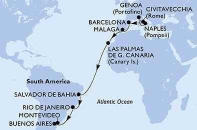 | Den 16 | Salvador, Brazílie, (připlutí: 12:00 | odplutí: 19:00) |