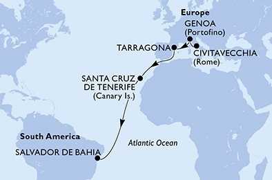| Den 14 | Salvador, Brazílie, (připlutí: 08:00 | odplutí: --:--) |