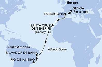 | Den 13 | Salvador, Brazílie, (připlutí: 08:00 | odplutí: 18:00) |