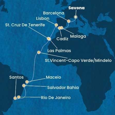 Itálie, Španělsko, Portugalsko, Kapverdy, Brazílie ze Savony na lodi Costa Diadema