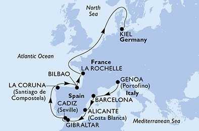 | Den 8 | La Coruña, Španělsko, (připlutí: 08:00 | odplutí: 17:00) |