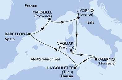 Itálie, Tunisko, Španělsko, Francie z Palerma na lodi MSC Splendida