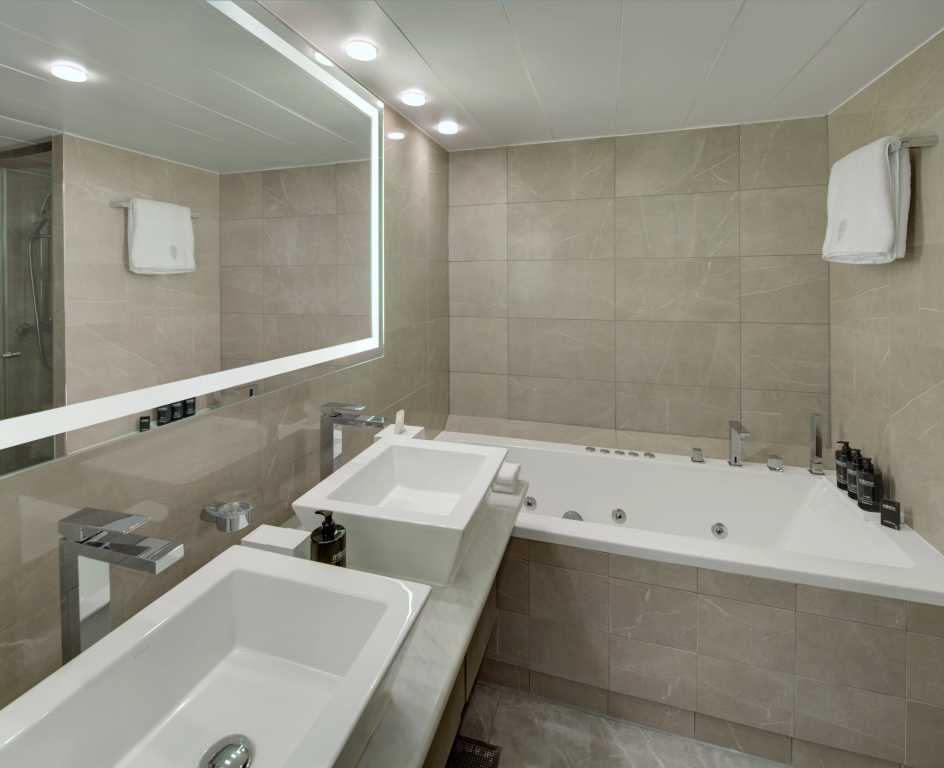 Ubytování v kajutě vybrané kategorie. Kajuty jsou vybavené samostatným sociálním zařízením, klimatizací, TV, minibarem, šatní skříní, kosmetickým stolkem, vysoušečem vlasů, trezorem a telefonem. Přístavní poplatky, portýrské služby při nalodění a vylodění, denní úklidový servis a výhody Vámi zvolené třídy ubytování.