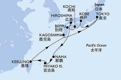 | Den 10 | Keelung (Taipei), Tchaj-wan, (připlutí: 08:00 | odplutí: 18:00) |