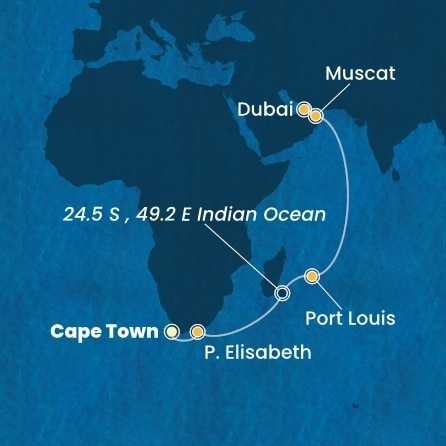 Jihoafrická republika, Mauricius, Omán, Spojené arabské emiráty z Kapského Města na lodi Costa Smeralda