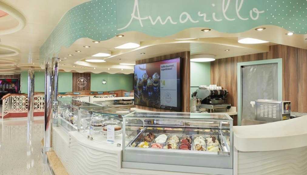 5 restaurací včetně Clubu Bacco a Samsara Restaurantu, 13 barů včetně Cognac & Cigar Baru a Coffee & Chocolate Baru Unikátní wellness areál Samsara Spa o rozloze 6 000m2, kde najdete thalassoterapie, saunu, turecké lázně, solárium, tělocvičnu a bazén Multifunkční sportovní hřiště, outdoorová joggingová dráha Kasino, simulátor Formule 1, knihovna, divadlo Giove, diskotéka Dětský Squok Club pro různé věkové kategorie, dětský bazének, herna Virtual World Internetová kavárna, nákupní centrum Ordinace lodního lékaře