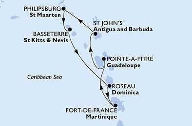 | Den 6 | Basseterre, Svatý Kryštof a Nevis, (připlutí: 09:00 | odplutí: 19:00) |