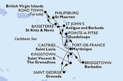 | Den 12 | Basseterre, Svatý Kryštof a Nevis, (připlutí: 09:00 | odplutí: 19:00) |