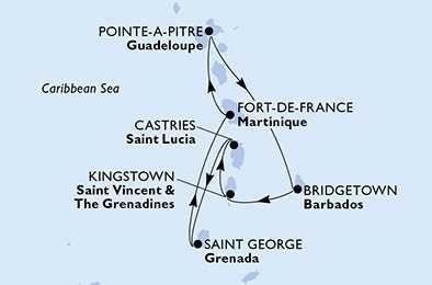 | Den 2 | Pointe-à-Pitre, Guadeloupe, (připlutí: 08:00 | odplutí: 19:00) |
