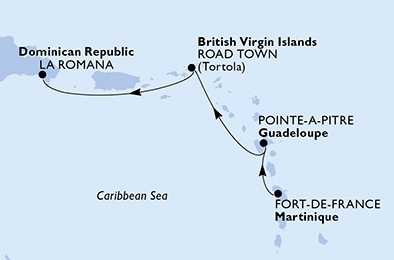 Martinik, Guadeloupe, Britské Panenské ostrovy, Dominikánská republika z Fort-de-France na lodi MSC Opera, plavba s bonusem