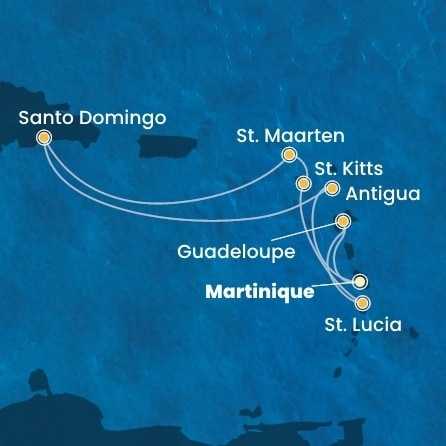 Martinik, Guadeloupe, Svatá Lucie, Svatý Kryštof a Nevis, Svatý Martin, Dominikánská republika, Antigua a Barbuda z Fort-de-France na lodi Costa Favolosa