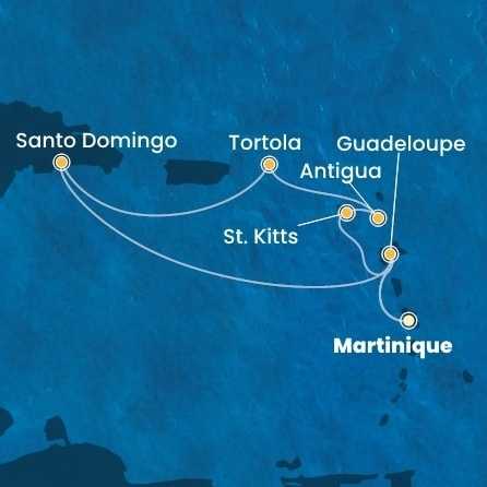 Martinik, Guadeloupe, Svatý Kryštof a Nevis, Antigua a Barbuda, Britské Panenské ostrovy, Dominikánská republika z Fort-de-France na lodi Costa Favolosa