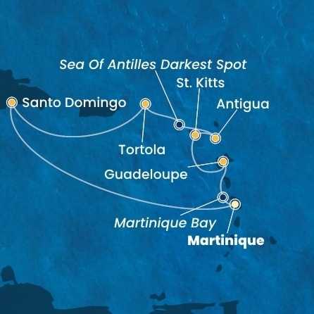 Martinik, Guadeloupe, Svatý Kryštof a Nevis, Antigua a Barbuda, Britské Panenské ostrovy, Dominikánská republika z Fort-de-France na lodi Costa Favolosa
