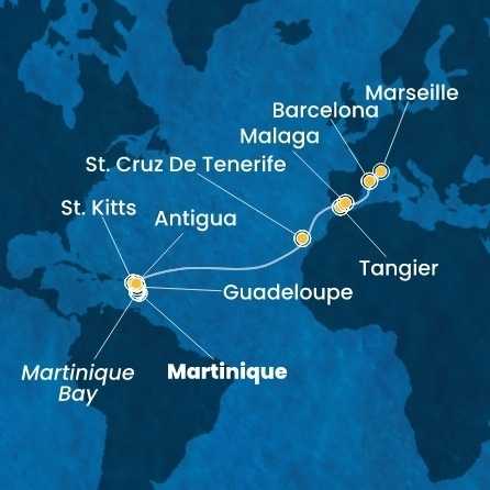 Martinik, Guadeloupe, Svatý Kryštof a Nevis, Antigua a Barbuda, Španělsko, Maroko, Francie z Fort-de-France na lodi Costa Favolosa