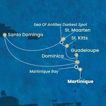 Martinik, Guadeloupe, Svatý Kryštof a Nevis, Svatý Martin, Dominikánská republika, Dominika z Fort-de-France na lodi Costa Favolosa