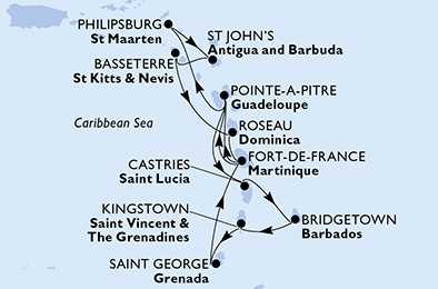 | Den 6 | Basseterre, Svatý Kryštof a Nevis, (připlutí: 07:00 | odplutí: 19:00) |