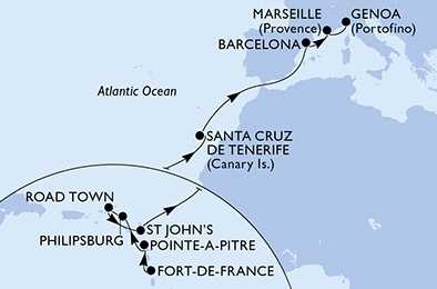 | Den 1 | Fort-de-France, Martinik, (připlutí: --:-- | odplutí: 19:00) |