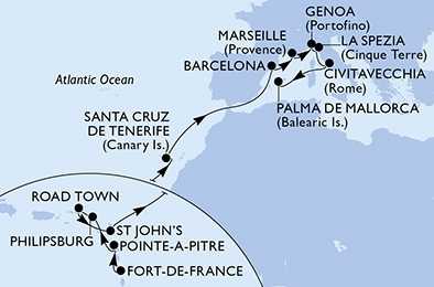 | Den 16 | Marseille, Francie, (připlutí: 09:00 | odplutí: 19:00) |