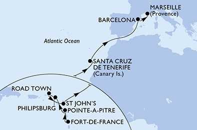 | Den 16 | Marseille, Francie, (připlutí: 09:00 | odplutí: --:--) |