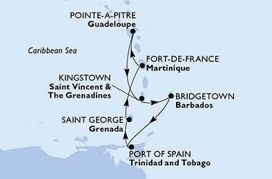 | Den 2 | Pointe-à-Pitre, Guadeloupe, (připlutí: 08:00 | odplutí: 19:00) |