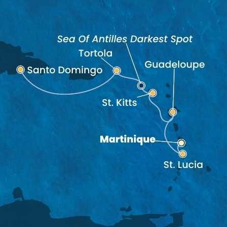 Martinik, Svatá Lucie, Guadeloupe, Svatý Kryštof a Nevis, Britské Panenské ostrovy, Dominikánská republika z Fort-de-France na lodi Costa Fascinosa