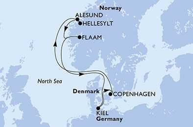 | Den 5 | Ålesund, Norsko, (připlutí: 07:00 | odplutí: 17:00) |