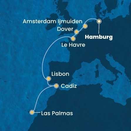 Německo, Nizozemsko, Velká Británie, Francie, Portugalsko, Španělsko z Hamburku na lodi Costa Favolosa
