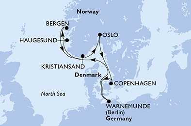 | Den 5 | Kristiansand, Norsko, (připlutí: 13:00 | odplutí: 21:00) |