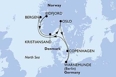 | Den 5 | Kristiansand, Norsko, (připlutí: 12:00 | odplutí: 20:00) |