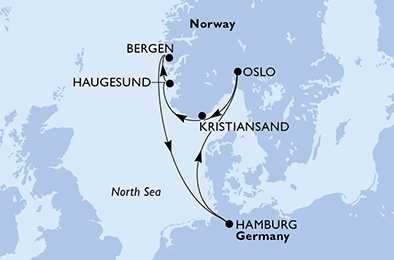 | Den 5 | Haugesund, Norsko, (připlutí: 08:00 | odplutí: 18:00) |
