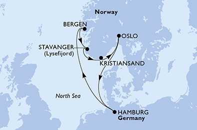 | Den 1 | Hamburk, Německo, (připlutí: --:-- | odplutí: 18:00) |