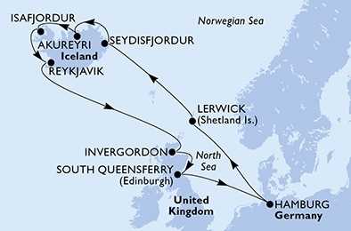 | Den 1 | Hamburk, Německo, (připlutí: --:-- | odplutí: 22:00) |
