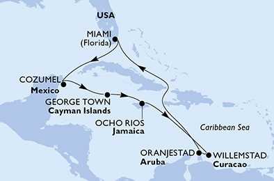 Průvodce: Služby česky/slovensky mluvícího průvodce po celou dobu zájezdu. Doprava: Letecká doprava v Economy class z Prahy do Miami a z Miami do Prahy, transfery z letiště na hotel, z hotelu do přístavu a z přístavu na letiště v Miami. Vaše lety jsou:11.02.2026 Praha - Mnichov: 06:15 - 07:10 (číslo letu: LH1695) 11.02.2026 Mnichov - Miami: 11:50 - 16:55 (číslo letu: LH460) 22.02.2026 Miami - Curych: 19:50 - 10:50 (+1) (číslo letu: LX65) 23.02.2026 Curych - Praha: 12:35 - 13:55 (číslo letu: LX1486)Na vyžádání je možné zajistit letenku z jiného letiště. Letecké společnosti si vyhrazují právo na změnu letů. Pokud k této situaci dojde, budeme Vás informovat. Ubytování před plavbou: Ubytování: 1 noc ve 3* hotelu na Miami Beach, se snídaní Plavba: Ubytování v kajutě vybrané kategorie (10 nocí). Kajuty jsou vybavené samostatným sociálním zařízením, klimatizací, TV, minibarem, šatní skříní, kosmetickým stolkem, vysoušečem vlasů, trezorem a telefonem. Přístavní poplatky (200€), portýrské služby při nalodění a vylodění, denní úklidový servis, neomezené vyloďování/naloďování v navštívených přístavech a výhody Vámi zvolené třídy ubytování. Strava na palubě: Rozšířená plná penze: 3 hlavní jídla denně v servírované či rautové restauraci, svačiny a půlnoční bufet. Nápoje: čaj, káva, voda z automatu v rautové restauraci po celý den. Zábava na palubě: Volné využití veřejných prostor - bazénu, vířivek, fitness centra a jiných sportovně-rekreačních zařízení, bezplatné zapůjčení plážových osušek, účast na všech akcích pořádaných na palubě – animační programy pro děti i dospělé, dětský klub (pro všechny věkové kategorie), večerní představení v divadle, živá hudba, lekce tance apod. Pojištění proti úpadku: Pojištění CK proti úpadku u pojišťovny Generali.