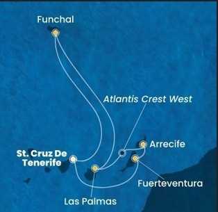 First Minute dárek: Sleva First Minute Snížená záloha pouze 2.000 Kč/os. Průvodce: Služby česky/slovensky mluvícího průvodce po celou dobu zájezdu. Doprava: Letecká doprava v Economy class z Prahy na Tenerife a z Tenerife do Prahy, transfery z letiště na hotel, z hotelu do přístavu a z přístavu na letiště na Tenerife. Na vyžádání je možné zajistit letenku z jiného letiště. Letecké společnosti si vyhrazují právo na změnu letů. Pokud k této situaci dojde, budeme Vás informovat. Ubytování před plavbou: Ubytování: 1 noc ve 3* hotelu na Tenerife se snídaní. Plavba: Ubytování v kajutě vybrané kategorie (7 nocí). Kajuty jsou vybavené samostatným sociálním zařízením, klimatizací, TV, šatní skříní, kosmetickým stolkem, vysoušečem vlasů, trezorem a telefonem. Přístavní poplatky, portýrské služby při nalodění a vylodění, denní úklidový servis a výhody Vámi zvolené třídy ubytování. Strava na palubě: Plná penze - snídaně, obědy a večeře v servírované či bufetové restauraci. Nápoje pouze v bufetové restauraci: voda, káva, čaj u snídaně a u svačiny v odpoledních hodinách, u oběda a večeře voda. Zábava na palubě: Volné využití veřejných prostor - bazénu, vířivek, fitness centra a jiných sportovně-rekreačních zařízení, bezplatné zapůjčení plážových osušek, účast na všech akcích pořádaných na palubě – animační programy pro děti i dospělé, dětský klub (pro všechny věkové kategorie), večerní představení v divadle, živá hudba, lekce tance apod. Pojištění proti úpadku: Pojištění CK proti úpadku u pojišťovny Generali.