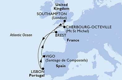 Po západních březích Evropy na MSC Meraviglia, plavba s českým průvodcem, plavba s dopravou
