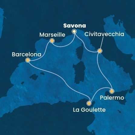 First Minute dárek: Sleva First Minute Snížená záloha pouze 2.000 Kč/os. Dárek: Výlet zdarma: prohlídka Savony Průvodce: Služby česky/slovensky mluvícího průvodce po celou dobu zájezdu. Doprava: Autobusová doprava do/z přístavu.Trasa: Praha - Plzeň - Rozvadov - Savona a zpět.Na vyžádání je možné přidat nástupní místa po trase. Pro místa mimo trasu můžeme zařídit navazující spoj za příplatek. Na vyžádání zajistíme i leteckou dopravu. Možnost vlastní dopravy. V případě dopravy mimo hlavní skupinu je třeba počítat s tím, že doprava do a z přístavu a nalodění je ve vlastní režii. Dále u této varianty nelze zaručit možnost zúčastnit se programu prvního a posledního dne.Plavba: Ubytování v kajutě vybrané kategorie (7 nocí). Kajuty jsou vybavené samostatným sociálním zařízením, klimatizací, TV, šatní skříní, kosmetickým stolkem, vysoušečem vlasů, trezorem a telefonem. Přístavní poplatky, portýrské služby při nalodění a vylodění, denní úklidový servis a výhody Vámi zvolené třídy ubytování. Strava na palubě: Plná penze - snídaně, obědy a večeře v servírované či bufetové restauraci. Nápoje pouze v bufetové restauraci: voda, káva, čaj u snídaně a u svačiny v odpoledních hodinách, u oběda a večeře voda. Zábava na palubě: Volné využití veřejných prostor - bazénu, vířivek, fitness centra a jiných sportovně-rekreačních zařízení, bezplatné zapůjčení plážových osušek, účast na všech akcích pořádaných na palubě – animační programy pro děti i dospělé, dětský klub (pro všechny věkové kategorie), večerní představení v divadle, živá hudba, lekce tance apod. Pojištění proti úpadku: Pojištění CK proti úpadku u pojišťovny Generali.
